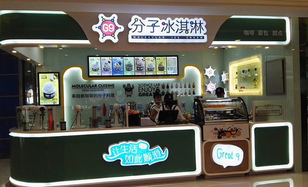 G9分子冰淇淋源自新加坡,为新加坡G9餐饮集团旗下品牌。于2012年9月进驻中国,至今,在中国大陆已开设出40多家门店。产品以现场制作、口感丝滑、新鲜水果搭配等特色,深得广大青年群体的喜爱。随着中国GDP走高,百姓早已脱离了满足温饱的初级阶段;他们会把更多的钱投入到提高生活质量、品味上来。而冰淇淋行业自2008年以来,正在爆发性的增长,迅猛发展,其整体市场每年以20%-30%的速度递增。而人口基数决定了中国即将成为世界上更大的冰淇淋消费国,但就目前成人均消费水平来看,中国与世界发达国家的消费水平相比有更大差距,中国的冰淇淋市场潜力更大。